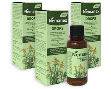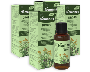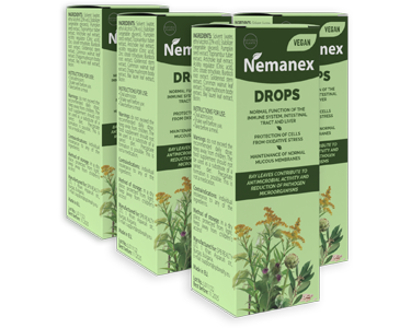 Nemanex este un supliment natural sub formă de picături, dezvoltat pentru curățarea organismului de paraziți și toxine. Sprijină sănătatea intestinelor, îmbunătățește aspectul pielii, părului și unghiilor, întărește sistemul imunitar și crește nivelul general de energie și starea de bine.